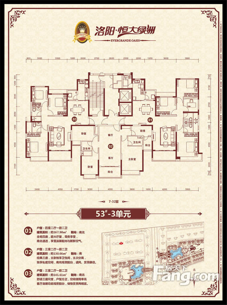 恒大綠洲項(xiàng)目位于洛陽市瀍河區(qū)洛陽市東出口,洛河以北、中州東路兩側(cè)、二廣高速以西,項(xiàng)目獨(dú)享洛河北岸3500多米河岸線,且處于洛陽市城市東西中軸線中州路東段,臨中州路街面長2000余米,有多路公交車直達(dá)。恒大綠洲全部項(xiàng)目占地面積約1338畝,規(guī)劃建筑面積近301萬平方米,居住單位2.06萬余戶,除居住建筑外,項(xiàng)目內(nèi)還配置了運(yùn)動(dòng)中心、綜合樓(會(huì)所)、幼兒園、小學(xué)、中學(xué)、商業(yè)配套、五星級(jí)酒店等,整個(gè)項(xiàng)目建成后,將形成約6.6萬人的居住規(guī)模。全部項(xiàng)目累計(jì)總投資超過100億元人民幣,預(yù)計(jì)上交稅收超過15億元人民幣。