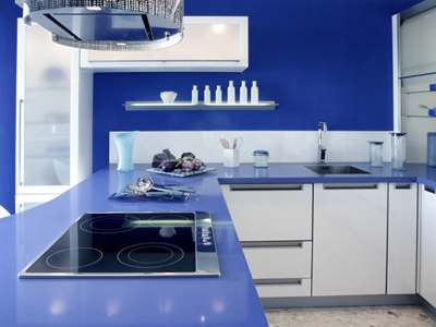 其實白色的吸塑櫥柜與藍色的石英石臺面,結(jié)合得相當(dāng)美。