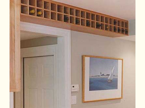 一些閑置的墻體,也可以被用來(lái)發(fā)揮用處,特別是一些原本被忽略的閑置墻體??窗咐芯椭v門(mén)框上的空間打造成壁式酒架,很好的利用了空間。