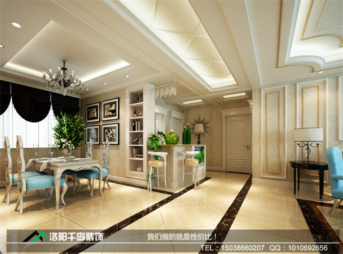 本案例位于洛陽一品雅居,整體方案運用立體、平面、色彩三大構成原理,讓空間更加豐富,大氣而不凌亂。在電視背景墻的設計中,沒有做隱形門處理,而是用門與墻面進行過渡處理,電視背景墻橫紋的延伸與臥室門形成不規(guī)則的構圖,富有變化且和諧統(tǒng)一。餐區(qū)的吊頂?shù)牡蹴敽喖s時尚,暗藏的燈槽反射的光線讓空間充滿情趣。衛(wèi)生間干區(qū)的設計讓墻面富有表情,馬賽克的鋪貼讓此處設計獨具風味。