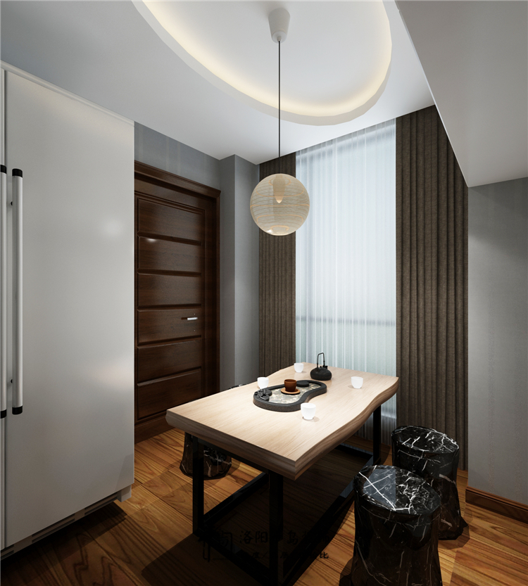 我們將用連通廚房的小休閑陽臺空間,改造成一個休閑的茶室,滿足客戶喜歡喝茶的習(xí)慣,充分利用每個空間。