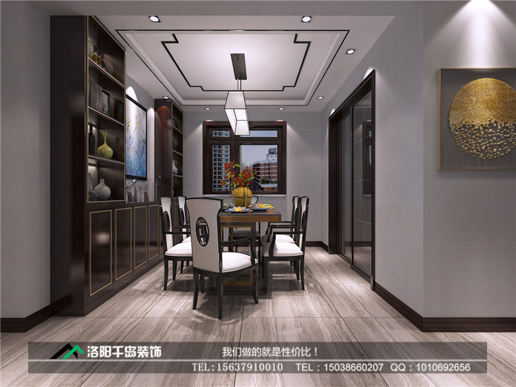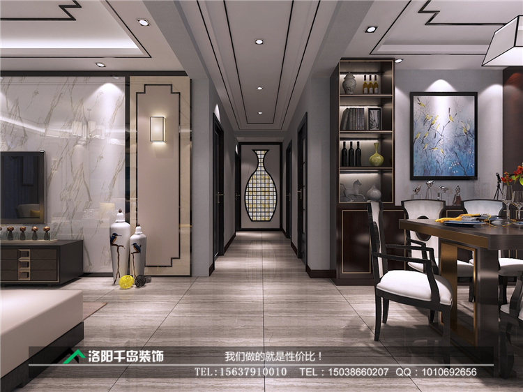 設計師在本套新中式裝修風格上,通過線條來串聯(lián)起古今的詩情畫意,將園林的曲徑通幽的精髓,揉入空間,在沉穩(wěn)內斂中表現(xiàn)出現(xiàn)代活潑理念,以減輕古韻里的厚重感。激烈的對比和鮮明的表達,空間呈現(xiàn)出極強的趣味感。