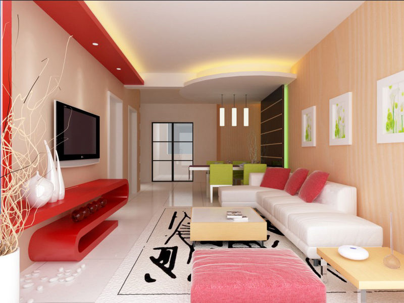 5.紅色。紅色調(diào)可以使整個客廳活潑起來。在設(shè)計時可以利用自然的明暗來制造豐富的層次感。金黃色的天頂,具有反光感的地面,為了避免過分的刺激,在一些地方可采用暗灰與亮灰相間的家具及墻面作為視線的過度。