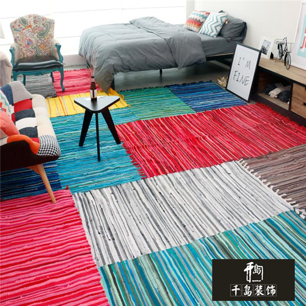 單人公寓小居室或臥室里如果要鋪設(shè)地毯,可以選擇滿鋪的形式,因?yàn)樾】臻g里再分區(qū)就會顯得頭不是頭,尾不像尾,特別尷尬。用彩色的手工編織棉條滿鋪起來能加寬視覺感,還能讓小屋子看上去更加溫馨。