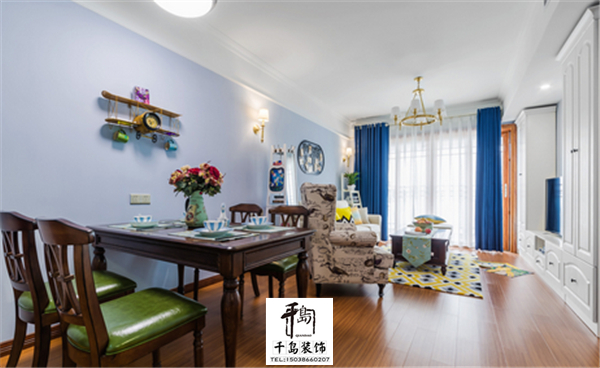不拘小節(jié)的年輕人總愛裝飾自己的家,木質(zhì)的家具,深藍色的紗窗,淡藍色的背景墻,綠色的椅子,自然色的亮麗都是成功的搭配。