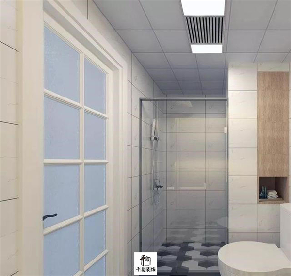 淋浴間和馬桶區(qū),用了玻璃門進(jìn)行隔斷,干濕分離也處理得蠻到位的。墻面也被充分利用起來,做了壁龕設(shè)計(jì),收納點(diǎn)小東西,很方便。