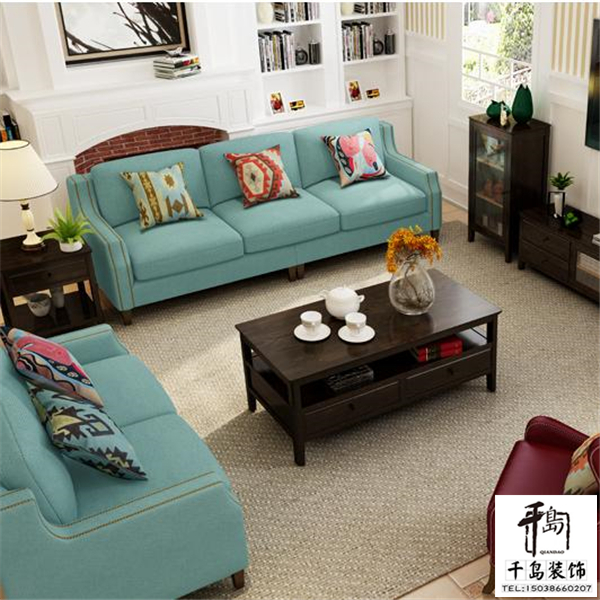 淡藍色是非常清新和干凈的顏色,會給人一種靜下來的感覺,田園風的簡潔色彩和線條,搭配做舊金屬色的鉚釘,在簡約中又透出了時尚與復古的元素,美式的時代感油然而生,沙發(fā)采用天然的乳膠材質,健康安全,又舒適透氣,使用壽命長,穩(wěn)固的實木沙發(fā)角讓它承重力超強,棉麻的面料美觀有質感,又親膚健康。