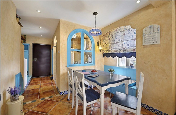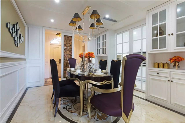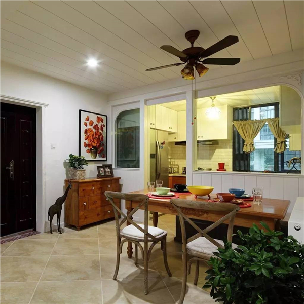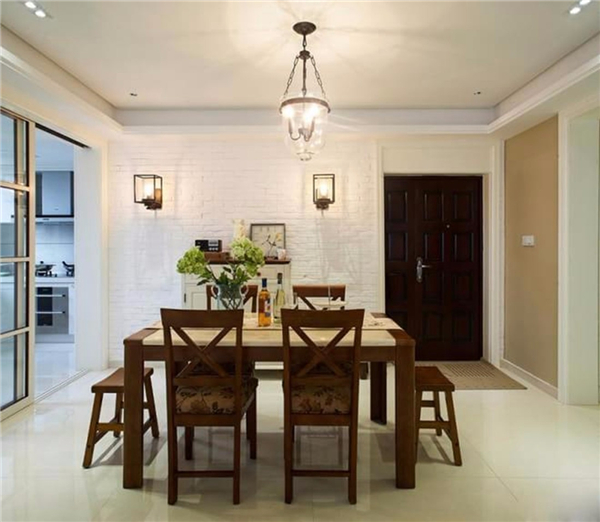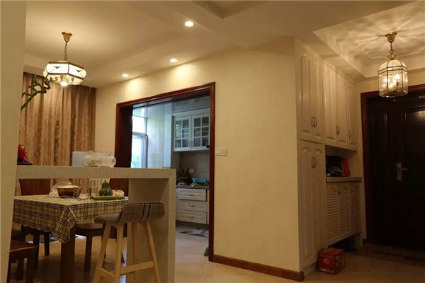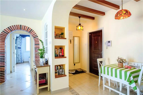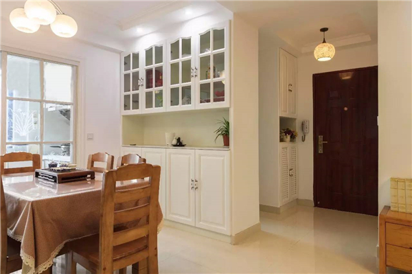 如果餐廳比較長的,可以裝一道屏風(fēng),避免入戶門直對餐廳;同時建議可以采用鞋柜隔斷,讓沒玄關(guān)的戶型隔出一個玄關(guān)空間的同時又能增加收納功能。